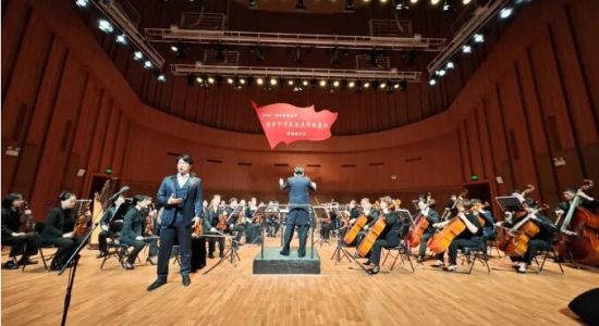 音樂會(huì)在交響樂《紅旗頌》的旋律中拉開帷幕。小號(hào)奏出的音符,把觀眾帶到開國大典上國旗冉冉升起那激動(dòng)人心的時(shí)刻。弦樂奏出舒展、優(yōu)美的主題,向觀眾講述在紅旗引導(dǎo)下,無數(shù)英烈英勇奮戰(zhàn)、奮發(fā)向上的革命氣概和感人故事。簡短有力的圓號(hào),豪邁而又激昂,象征著紅旗飄揚(yáng),帶領(lǐng)全國各族人民邁開巨人般的步伐走進(jìn)新時(shí)代。蕩氣回腸的音樂深深感染了現(xiàn)場觀眾,座席上響起陣陣掌聲。