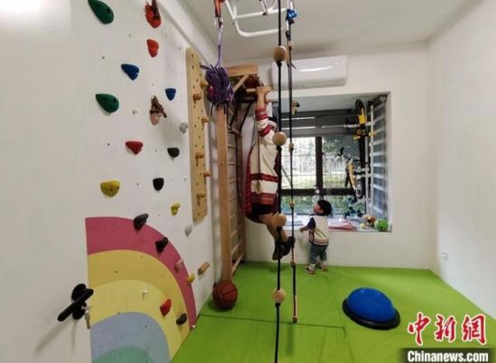 4月1日,廣西南寧,沙部·魯比在家中打造微型“運動場”。當(dāng)天,在桂臺灣教師沙部·魯比喬遷新居,實現(xiàn)跨越海峽的“安居夢”。 中新社記者 張廣權(quán) 攝