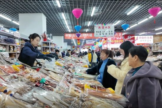 四樓的日雜區(qū),早已被紅彤彤的春聯(lián)、福字、燈籠裝點(diǎn)得年味十足。在這里,采買的不僅是琳瑯滿目的商品,更是一份準(zhǔn)備過年的鄭重“儀式感”。從朝鮮族傳統(tǒng)服飾到日常百貨,從山珍海味到零食調(diào)料,人們在這里一站式購齊年貨。延吉西市場管理辦公室農(nóng)貿(mào)副主任付晨光告訴記者:“進(jìn)入臘月以來,市民采買量明顯增加,特別是服裝類和日用品類,近期外地游客增多,為了方便游客,我們在AB區(qū)設(shè)置了臨時的順豐快遞點(diǎn),讓游客把新鮮的延吉年味帶回家!