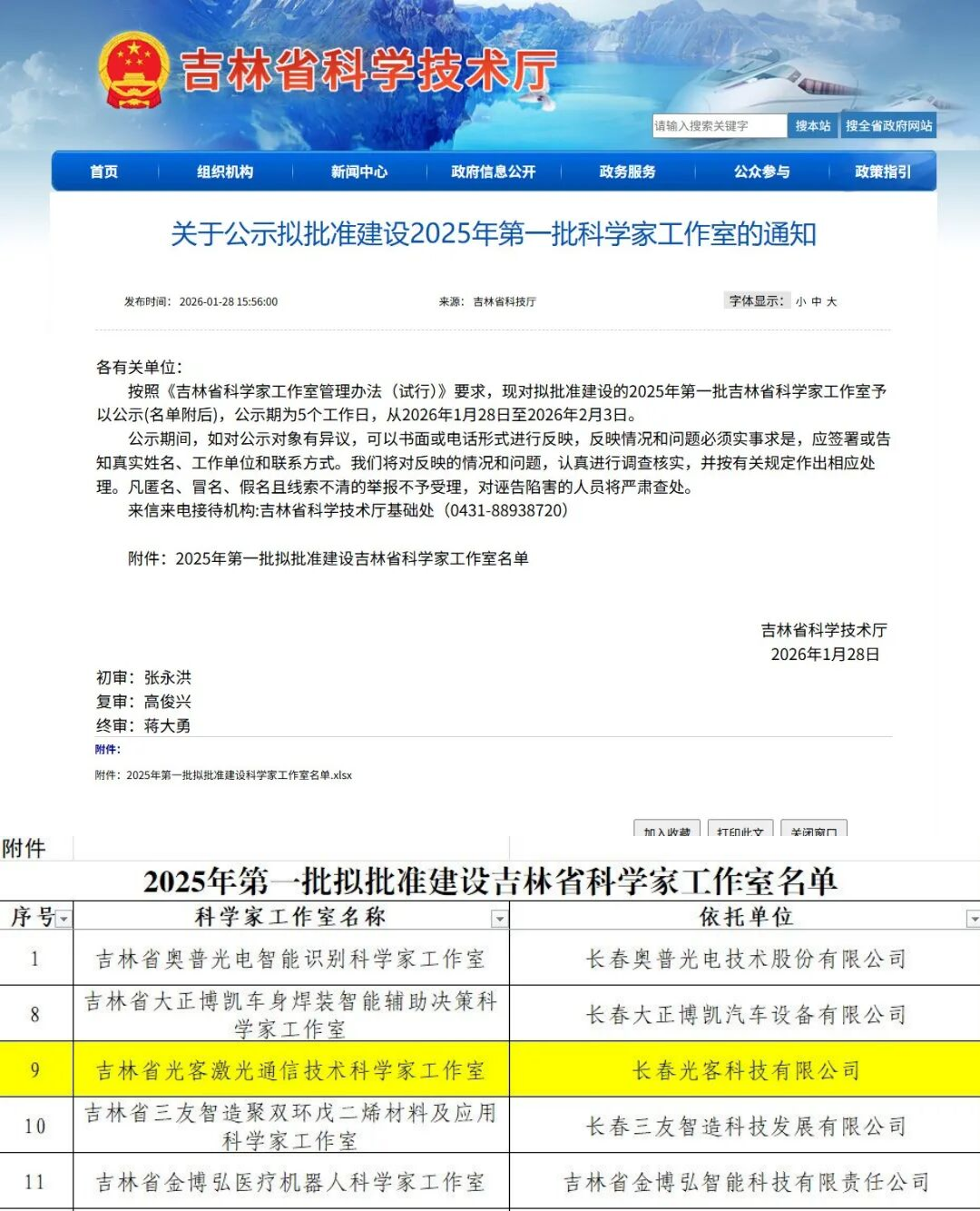 長(zhǎng)春光客科技有限公司獲批“吉林省科學(xué)家工作室”