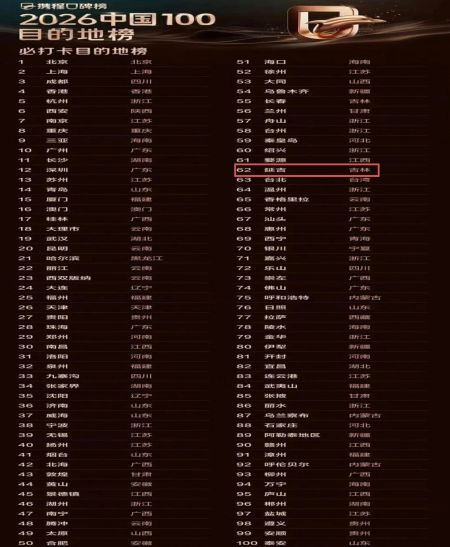 近日,攜程口碑榜正式發(fā)布“2026中國100目的地榜”,延吉憑借高漲的人氣與突出的綜合實力,成功入選,位列必打卡目的地第62名。這也是延吉連續(xù)三年榮登該榜單。