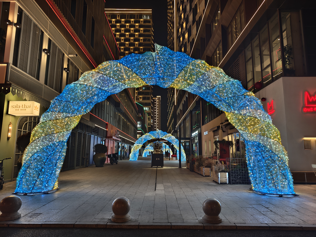 活動當(dāng)晚,阿卡貝拉樂團(tuán)的動人歌聲為亮燈儀式拉開序幕。80萬顆LED燈珠組成的8米高流光燈帶同步點亮,與13米高的巨型云杉童話樹交相輝映,搭配光影瀑布、歐洲網(wǎng)紅天使燈陣、光影堤岸等多組藝術(shù)裝置,將青怡坊云瑯打造成流光溢彩的“童話秘境”。游客穿梭其中,步步皆景、處處可打卡,沉浸式感受“現(xiàn)實版童話世界”的獨(dú)特魅力。