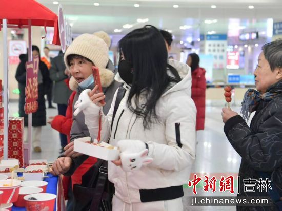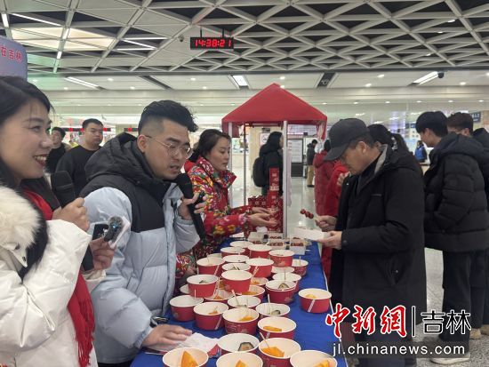 在出站口,《大東北我的家鄉(xiāng)》音樂(lè)響起,游客剛下火車便被充滿東北風(fēng)情的快閃表演吸引,免費(fèi)品嘗的凍柿子、凍梨、冰糖葫蘆,免費(fèi)領(lǐng)取綠園文旅游玩攻略和多種購(gòu)物優(yōu)惠券,讓全國(guó)各地的游客剛踏上東北的土地,就感受到的東北人的熱情。
