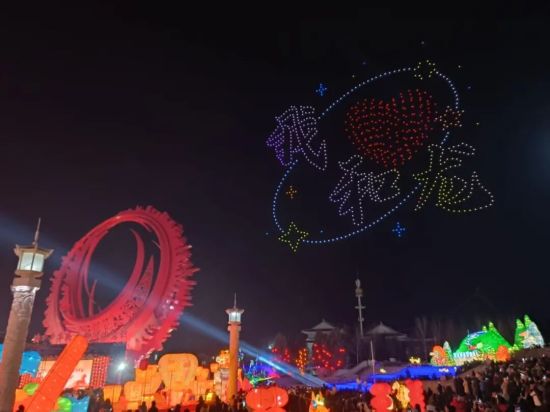 夜幕降臨,活動(dòng)迎來高潮時(shí)刻!耙箍砧 龍馬精神”無人機(jī)表演震撼亮相,數(shù)百架無人機(jī)劃破夜空,依次排布出“我愛和龍”“紅太陽照邊疆”等極具和龍?zhí)厣膱D案,科技的靈動(dòng)與浪漫的氛圍完美交融,引得現(xiàn)場觀眾紛紛駐足拍攝、贊嘆不已。