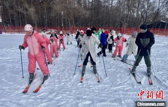 研學(xué)團(tuán)成員在長春凈月潭體驗(yàn)滑雪樂趣!〖质∥穆脧d供圖