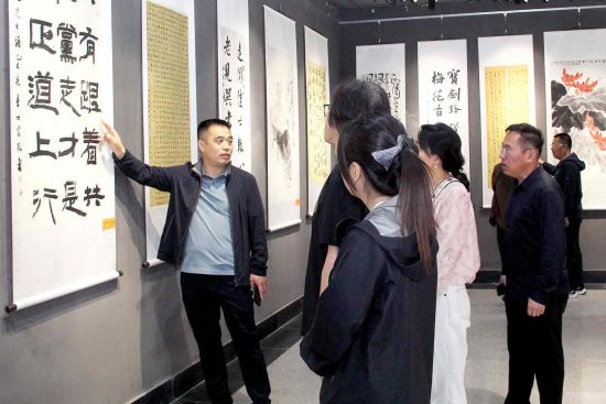 活動現(xiàn)場氛圍熱烈,民進(jìn)會員、書畫愛好者等觀眾絡(luò)繹不絕,大家在書法作品前凝神品讀字里行間的民進(jìn)精神,在絢麗畫作前輕聲探討,贊嘆創(chuàng)作技藝。參展作品主題鮮明,以書言志、以畫傳情,既追憶民進(jìn)先賢風(fēng)骨,又禮贊新時代豪邁征程,將民進(jìn)精神與藝術(shù)追求相融,充分彰顯了民進(jìn)人“為時代畫像、為時代立傳、為時代明德”的文化自覺,不僅是對民進(jìn)發(fā)展歷程的深情回望,更是對未來奮進(jìn)之路的美好展望。