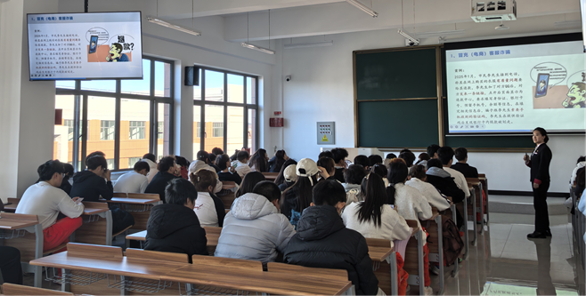 活動(dòng)現(xiàn)場(chǎng),臨河街支行的工作人員結(jié)合高校校園詐騙的高發(fā)特點(diǎn),以通俗易懂的語(yǔ)言為師生們帶來了一場(chǎng)干貨十足的反詐宣講。宣講環(huán)節(jié)中,工作人員首先從“什么是電信網(wǎng)絡(luò)詐騙”切入,系統(tǒng)講解了電信網(wǎng)絡(luò)詐騙的定義、常見類型及隱蔽性、迷惑性特點(diǎn),讓師生們對(duì)這類違法犯罪行為建立起清晰認(rèn)知。隨后,通過“以案說詐”的形式,工作人員選取了近年來高發(fā)的校園貸、刷單返利、冒充老師同學(xué)借錢、虛假購(gòu)物退款等典型詐騙案例,深入剖析了詐騙分子的作案手法、話術(shù)陷阱以及受害者的受騙心理,用真實(shí)案例敲響安全警鐘,讓師生們直觀感受詐騙的危害性。