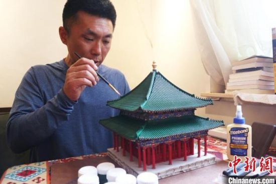 “根本停不下來,比小時候玩的積木更吸引我!闭f話時,王雪松的眼睛一直沒有離開“五爺廟”。那是她的一件新玩具,她在用顏料彩繪房梁,這件新玩具已經(jīng)進入上色階段,不日將完工。