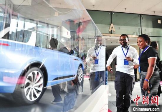在一臺發(fā)動機前,杜喬駐足許久,一邊仔細看著復(fù)雜的參數(shù),一邊和同伴交流。他感慨中國新能源汽車產(chǎn)業(yè)的技術(shù)水平之高,應(yīng)用成果之多!拔椰F(xiàn)在做的課題是儲能系統(tǒng),與智能控制、電力設(shè)備有關(guān)!倍艈陶f,自己的研究成果未來可以應(yīng)用于汽車領(lǐng)域。
