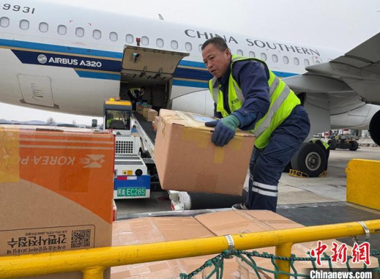 3月16日,延吉機(jī)場(chǎng)恢復(fù)了中斷四年的國(guó)際郵件進(jìn)港業(yè)務(wù)!∏駨(qiáng) 攝