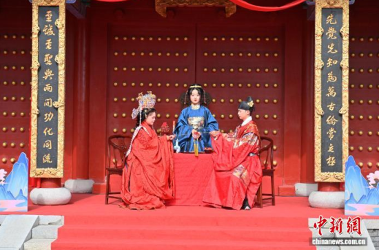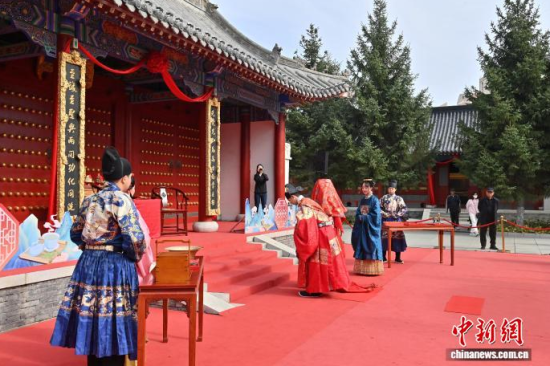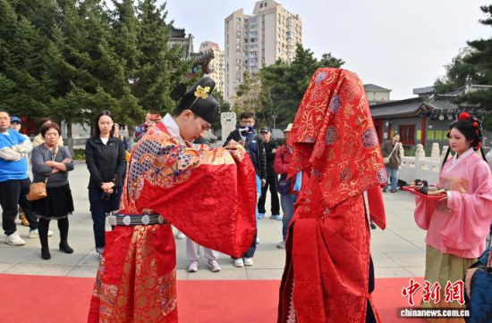 10月7日,吉林長(zhǎng)春文廟舉行了一場(chǎng)明制漢婚沉浸式展演。漢服愛(ài)好者依次呈現(xiàn)奠雁、同牢、合巹等傳統(tǒng)禮儀,生動(dòng)還原明代婚俗。現(xiàn)場(chǎng)通過(guò)流程講解與道具展示,解讀禮儀背后古人對(duì)婚姻與美好生活的寄愿。中新社記者 張瑤 攝