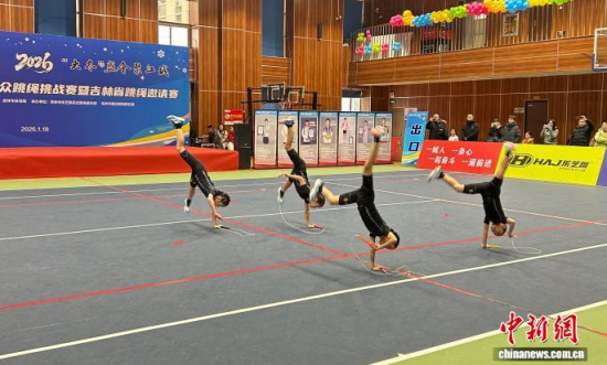 中新網(wǎng)吉林1月18日電 (記者 石洪宇)18日,2026吉林市大眾跳繩挑戰(zhàn)賽暨吉林省跳繩邀請(qǐng)賽開(kāi)幕。逾20名世界跳繩冠軍、吉尼斯世界紀(jì)錄保持者同場(chǎng)炫技,向公眾推廣這一運(yùn)動(dòng)。