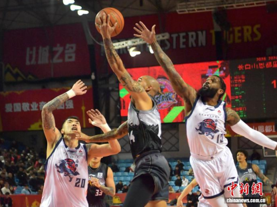 吉林隊(duì)14號摩爾(黑衣)持球上籃!〗饐 攝