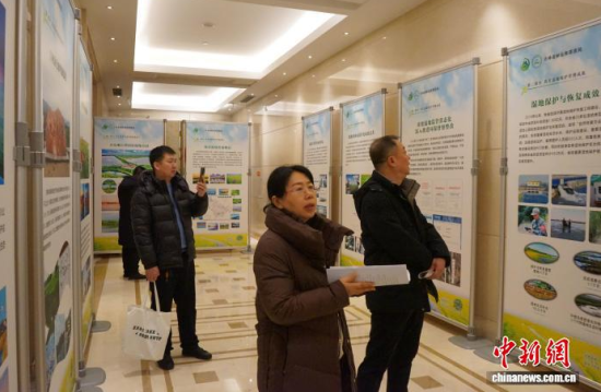 2月2日,參會人員在參觀吉林省濕地保護宣傳板!未T 攝