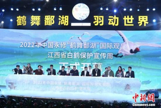 當(dāng)日,以“鶴舞鄱湖 羽動(dòng)世界”為主題的2022年中國(guó)永修“鶴舞鄱湖”國(guó)際觀(guān)鳥(niǎo)大會(huì)在“中國(guó)候鳥(niǎo)小鎮(zhèn)”江西永修縣吳城鎮(zhèn)開(kāi)幕,活動(dòng)旨在以候鳥(niǎo)為媒、以鄱湖為景,開(kāi)啟觀(guān)鳥(niǎo)親鳥(niǎo)、愛(ài)鳥(niǎo)護(hù)鳥(niǎo)的廣闊天地,架起交流溝通、開(kāi)放合作的友誼橋梁。