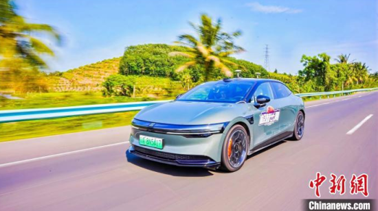 4月12日,在海南東線高速進(jìn)行“極智長測”測試的新能源汽車。孟子瀟 供圖