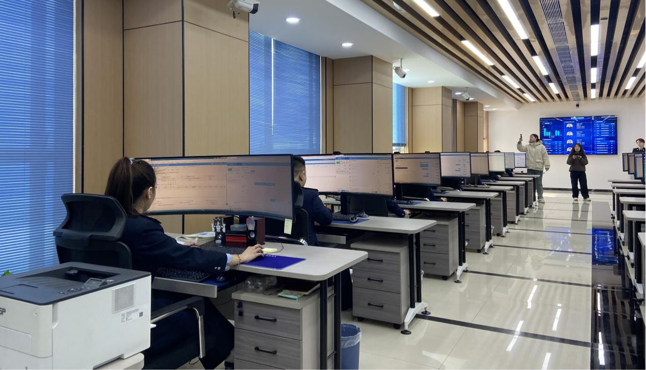如果說一樓大廳是服務(wù)的“前臺”,那么二樓稅費(fèi)服務(wù)集約處理中心則是支撐這一切的“大腦”。巨大的電子顯示屏上實(shí)時滾動著各項(xiàng)數(shù)據(jù):稅款繳納、納稅申報的頻次和占比,以及每個征納互動人工坐席的會話數(shù)量、服務(wù)時長。