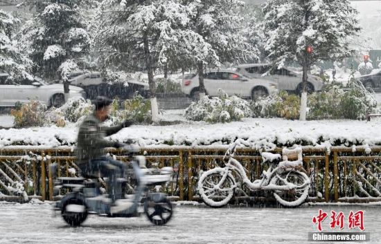 11月1日,吉林長(zhǎng)春降下今年入秋以來(lái)的第一場(chǎng)雪,整座城市披上銀裝。中新社記者 張瑤 攝