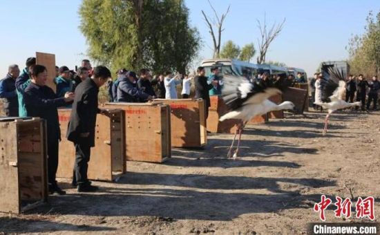 中新網(wǎng)長(zhǎng)春11月19日電 (張瑤 王萬(wàn)峰)吉林省林業(yè)和草原局19日介紹,該局近日組織野生動(dòng)物救護(hù)部門(mén)將救助的11只東方白鸛成功護(hù)送到天津七里海國(guó)家濕地公園與已遷徙至那里的種群匯合。這是吉林省第一次大規(guī)?缡∽o(hù)送“鳥(niǎo)界國(guó)寶”東方白鸛歸隊(duì)。