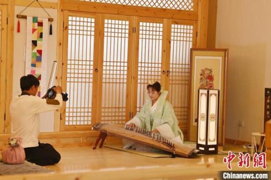 在吉林省延邊州延吉市的中國(guó)朝鮮族民俗園內(nèi),游客身著朝鮮族服飾拍照。張瑤 攝