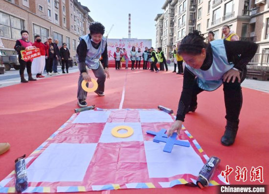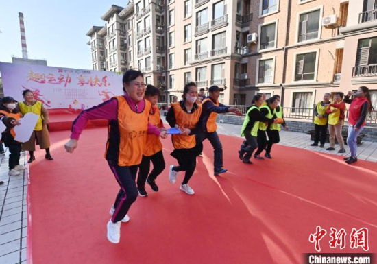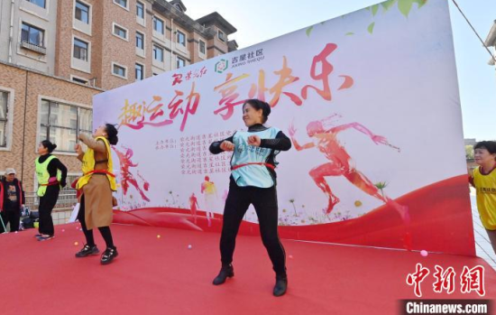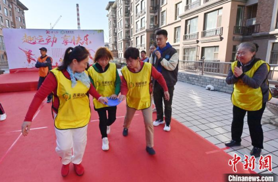 10月11日,在長(zhǎng)春市吉星社區(qū),近百名老年人參加重陽(yáng)節(jié)趣味運(yùn)動(dòng)會(huì)。中新社記者 張瑤 攝