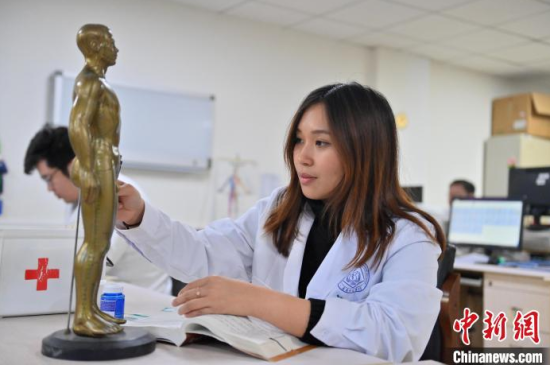 10月23日,吉林長春,林玉花在練習(xí)針灸。來自泰國的林玉花是長春中醫(yī)藥大學(xué)中醫(yī)內(nèi)科學(xué)的研究生,經(jīng)過一年多的深造,她越發(fā)愛上博大精深的中醫(yī)和中國傳統(tǒng)文化。林玉花說,她希望把在中國學(xué)到的中醫(yī)技藝帶回家,將來開一家中醫(yī)館。中新社記者 張瑤 攝
