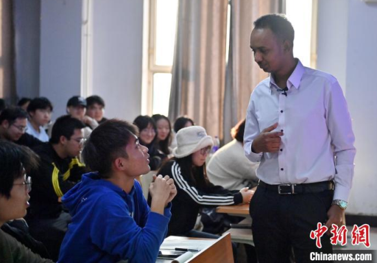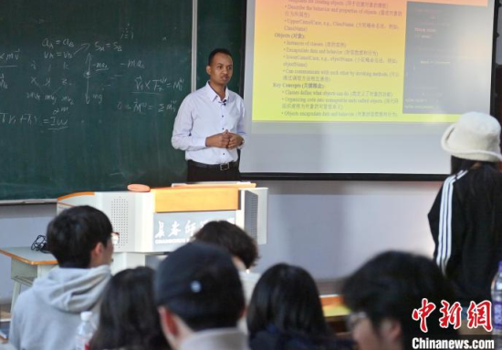 11月6日,在長春師范大學,馬宋在上課。1993年出生的馬宋來自蘇丹,畢業(yè)于中國地質大學計算機技術與科學專業(yè),畢業(yè)后在福建一家企業(yè)做IT工程師。喜歡教學的馬宋,去年來到長春師范大學“跨界”成為一名計算機專業(yè)的老師。馬宋說,他和中國的年輕人相處得非常愉快,未來他想扎根在這里,為學生們傳道授業(yè)解惑。中新社記者 張瑤 攝