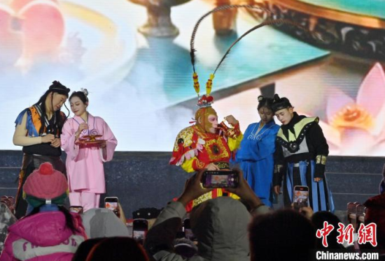 12月5日,在長春市動植物公園,“孫悟空”在與游客互動。當天,該園“西游記主題樂園”重新開放,吸引全國各地游客"沉浸式”體驗中國傳統(tǒng)文化。 中新社記者 張瑤 攝