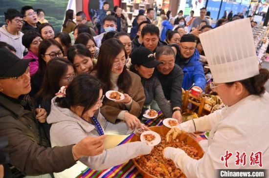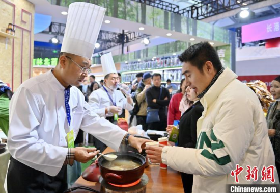 12月7日,吉林長春,市民在品嘗人參藥膳。當天,2024長春國際醫(yī)藥健康產(chǎn)業(yè)博覽會開幕,在人參展區(qū),展示了百年野山參、人參藥膳及人參深加工產(chǎn)品。中新社記者 張瑤 攝