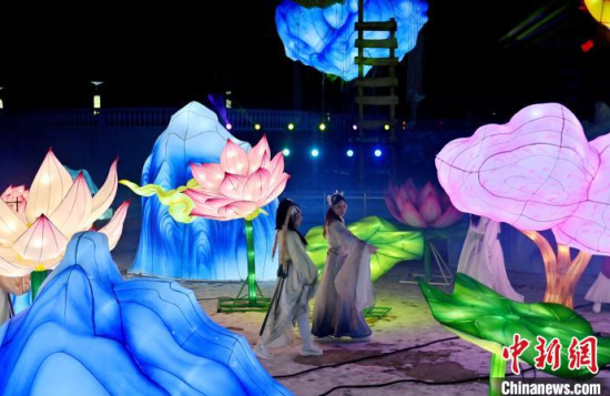 2025年1月1日晚,游客在位于吉林長春的長影世紀(jì)城欣賞花燈。當(dāng)天,長影世紀(jì)城內(nèi)超百組炫彩花燈同時(shí)點(diǎn)亮,營造出一個(gè)夢幻般的璀璨世界,為新年的到來增添喜慶氣氛。中新社記者 張瑤 攝