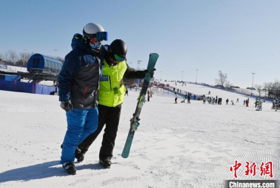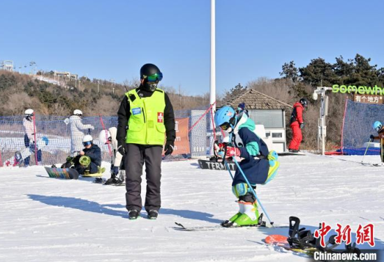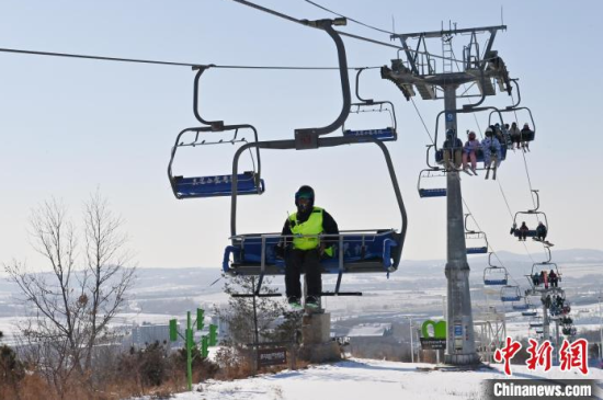 1月15日,在位于長春的天定山滑雪場,何海東在檢查雪道護網(wǎng)。何海東是一名滑雪巡救員,雪季期間,雪友數(shù)量激增,何海東的工作也變得異常繁忙。他要在零下二十攝氏度的天氣中日行三萬步,全面巡查雪道環(huán)境,排查安全隱患,如有意外他將第一時間對傷者實施救助。中新社記者 張瑤 攝