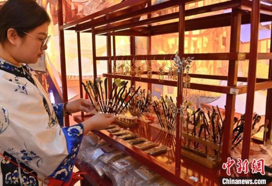 2月18日,在長春市一家商場內,商家在陳列簪子。中新社記者 張瑤 攝