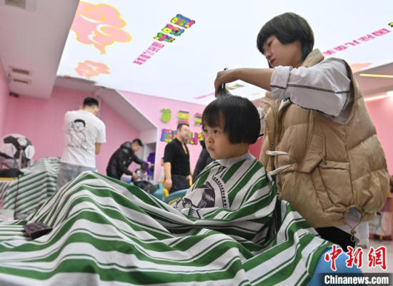 3月1日,農(nóng)歷二月初二,在吉林長春一家兒童理發(fā)店,家長紛紛帶著孩子來“剃龍頭”,理發(fā)店還為孩子們?cè)O(shè)計(jì)了各種有趣的發(fā)型。中新社記者 張瑤 攝