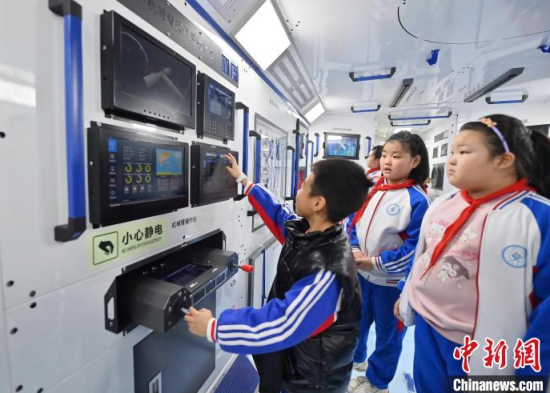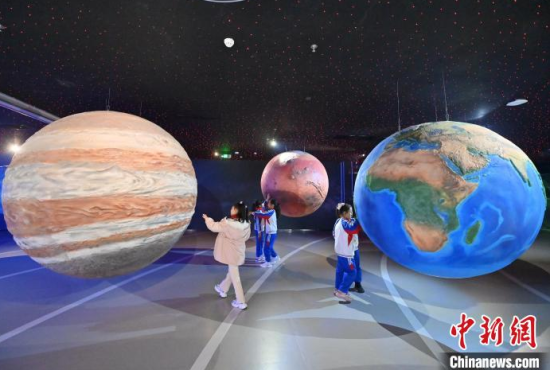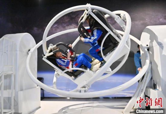 4月9日,吉林長春,小朋友在參觀航天服模型。中國航天日臨近,不少小朋友來到筑夢星辰(長春)航天科教文旅館,通過互動體驗學(xué)習(xí)航天知識,探索宇宙的奧秘。中新社記者 張瑤 攝