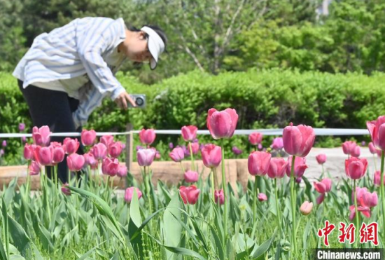 5月15日,在長春市長春公園內(nèi),近十萬株郁金香競相綻放,吸引了眾多游客前來觀賞。當(dāng)天,“幸福匯·郁見美好”長春公園郁金香主題觀賞季系列活動正式啟幕,游客在賞花觀景中享受夏日清涼。中新社記者 張瑤 攝