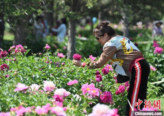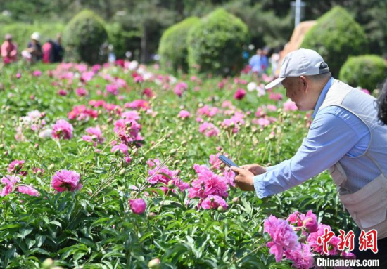 6月11日,在長(zhǎng)春市長(zhǎng)春公園內(nèi),六萬(wàn)余株芍藥花競(jìng)相綻放,吸引了眾多游客前來(lái)觀賞。中新社記者 張瑤 攝