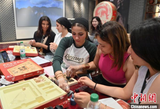 6月24日,吉林長春,埃及青年體驗(yàn)活字印刷術(shù)。當(dāng)天,來自美國、埃及、印度尼西亞等國家的青年在長春體驗(yàn)?zāi)嗨、活字印刷術(shù),參觀一汽紅旗文化展館,近距離感受中國文化的魅力。中新社記者 張瑤 攝