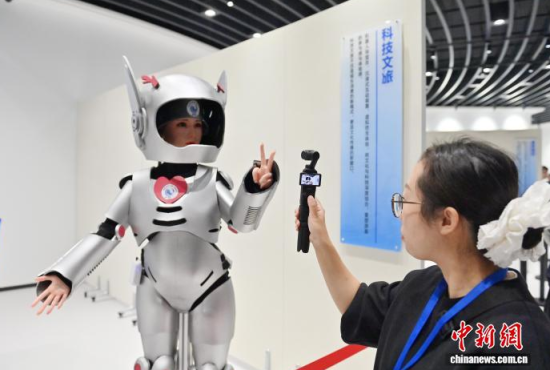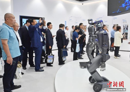 9月30日,吉林長(zhǎng)春,參觀者觀看科技文旅機(jī)器人。當(dāng)天,吉林省仿生機(jī)器人創(chuàng)新中心應(yīng)用示范基地于吉林省長(zhǎng)春市揭牌,全國(guó)首家“仿生機(jī)器人MALL”也在同期開(kāi)幕。該基地集展示、體驗(yàn)、科普、銷售等功能于一體,致力于打造沉浸式科技消費(fèi)新地標(biāo)。中新社記者 張瑤 攝