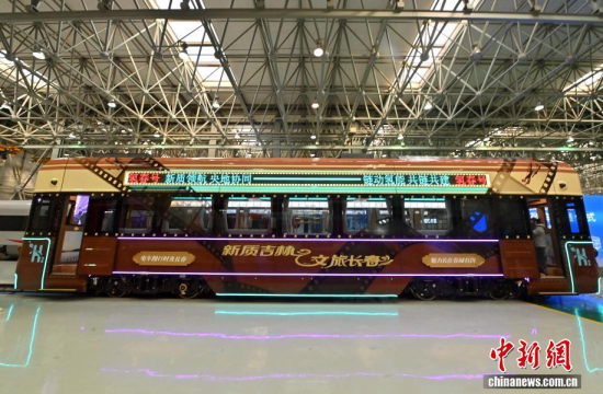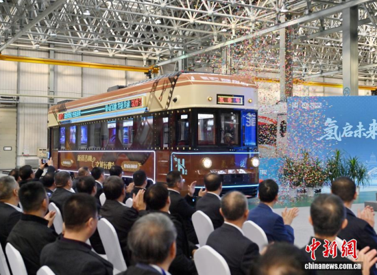 10月16日,中國首列氫能文旅列車“氫春號”在吉林長春正式下線。該列車由中車長春軌道客車股份有限公司研制,采用氫能動力系統(tǒng),無需接觸網供電,運行時的唯一產物是水,真正實現了零碳排放。列車支持1至6節(jié)的靈活編組,能夠滿足城市通勤與文化旅游等多元化線路需求。“氫春號”的亮相,意味著氫能在軌道交通場景下的商業(yè)化從實驗室走向應用。中新社記者 張瑤 攝