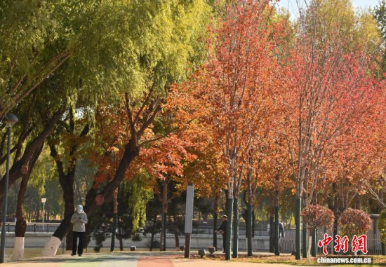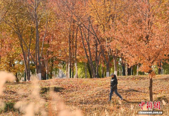 10月30日,吉林長(zhǎng)春秋景怡人,市民踏葉賞秋,享受秋日美好時(shí)光。 中新社記者 張瑤 攝