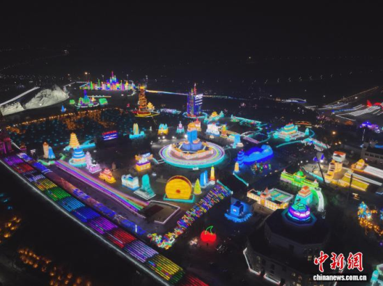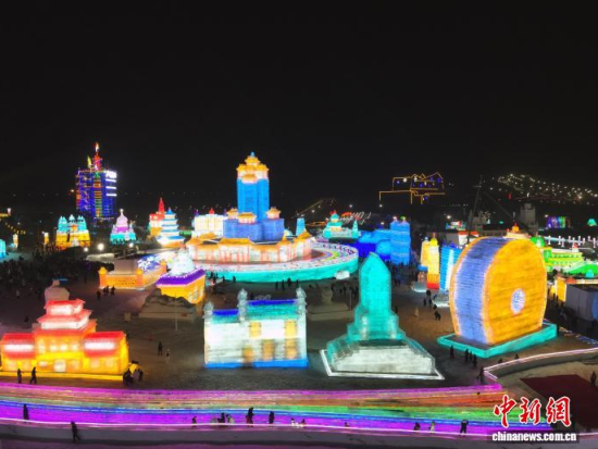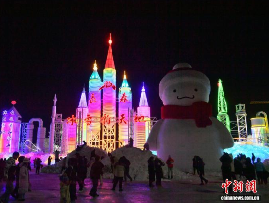 12月19日晚,長(zhǎng)春冰雪新天地開門迎客。2025-2026雪季的長(zhǎng)春冰雪新天地占地面積156萬平方米,開發(fā)了76萬平方米的冰雪游樂空間,總用冰用雪量達(dá)85萬立方米,冰雪雕塑200余座。隨著夜幕降臨,冰雕景觀亮燈,整個(gè)園區(qū)仿佛一座如夢(mèng)如幻的冰雪王國(guó)。中新社記者 張瑤 攝