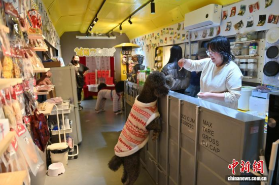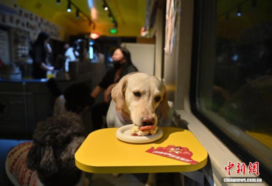 2月11日,吉林長(zhǎng)春,小狗在火車(chē)車(chē)廂主題寵物餐廳旁經(jīng)過(guò)。該餐廳集寵物餐飲、游樂(lè)與社交功能于一體,為寵物打造沉浸式用餐體驗(yàn)。臨近春節(jié),后廚正加緊趕制寵物年夜飯,新年禮盒供不應(yīng)求,不少寵主早早預(yù)訂“車(chē)廂座位”。中新社記者 張瑤 攝