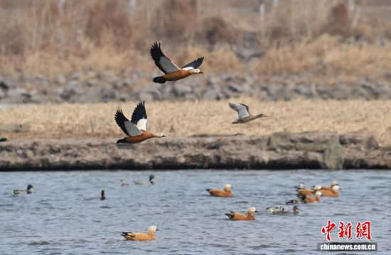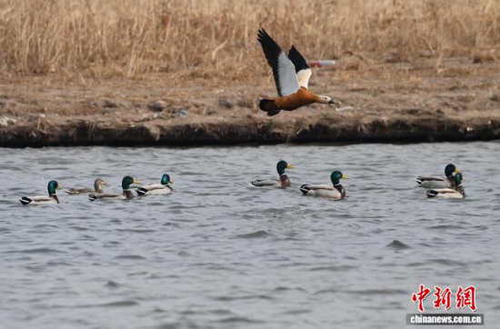 3月13日,長(zhǎng)春市伊通河上演“春江水暖鴨先知”的生動(dòng)景象。隨著氣溫回升,冰封的河面逐漸融化,近千只赤麻鴨、綠頭鴨等越冬水鳥(niǎo)齊聚未封凍的水域。它們時(shí)而在水中嬉戲覓食,時(shí)而在藍(lán)天列隊(duì)飛翔,與尚未消融的冰雪相映成趣,為城市增添了勃勃生機(jī)。中新社記者 張瑤 攝
