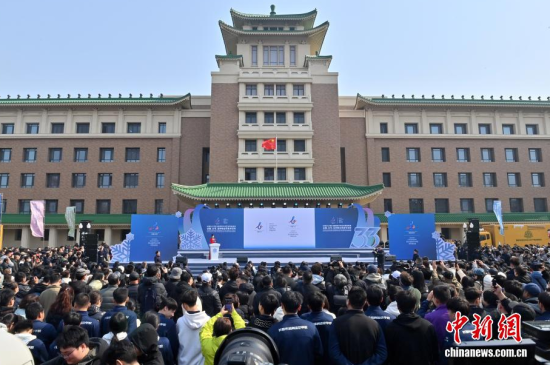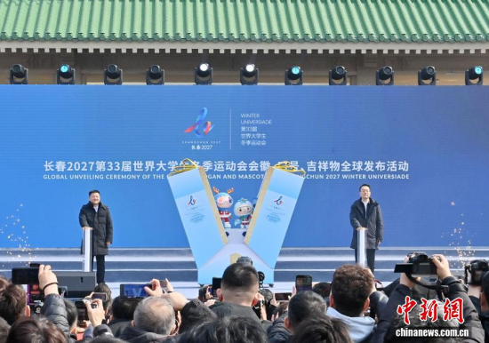 3月21日,長春2027第33屆世界大學(xué)生冬季運動會在長春發(fā)布會徽、吉祥物及賽事口號。會徽定名“春長”,吉祥物名為“吉冰”“吉雪”,賽事口號為“逐夢冰雪,長駐青春”。2027長春大冬會將在長春市、吉林市舉辦,當天是倒計時300天。圖為大冬會吉祥物“吉冰”“吉雪”亮相長春街頭。中新社記者 張瑤 攝