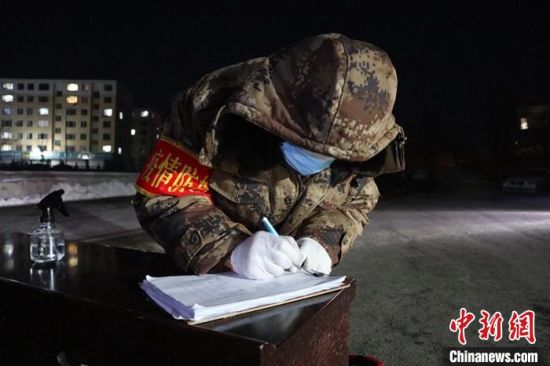 中新網(wǎng)通化1月28日電 (蒼雁 孫博妍)入夜的通化月光皎白,李曉東望著對面窗里亮起的燈,安心不少!澳鞘俏壹,就在卡點(diǎn)對面。”在防疫一線駐守半個月,李曉東很惦記家里人。