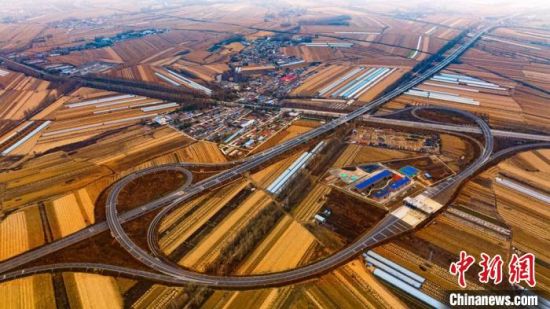 鳥瞰長春都市圈環(huán)線高速公路東環(huán)二期項目。(資料圖) 吉林省交通運輸廳供圖