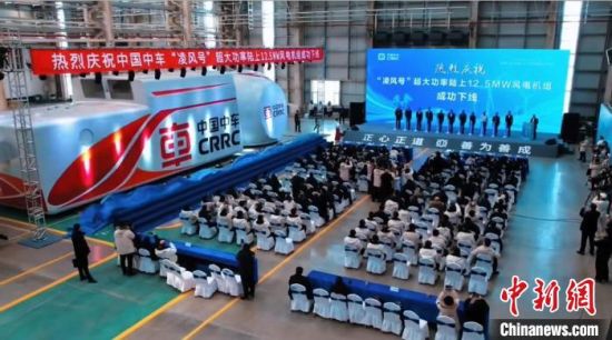 1月18日,中國首個12兆瓦級陸上風電機組——“凌風號”在吉林松原下線。(松原市委宣傳部供圖)