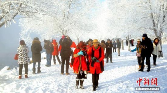 冰雪旅游市場為吉林航空運(yùn)輸提供客源基礎(chǔ),圖為游客觀賞吉林霧凇。(資料圖) 吉林市委宣傳部供圖