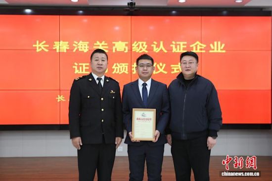 長春海關(guān)向企業(yè)頒授證書。(長春海關(guān)供圖)